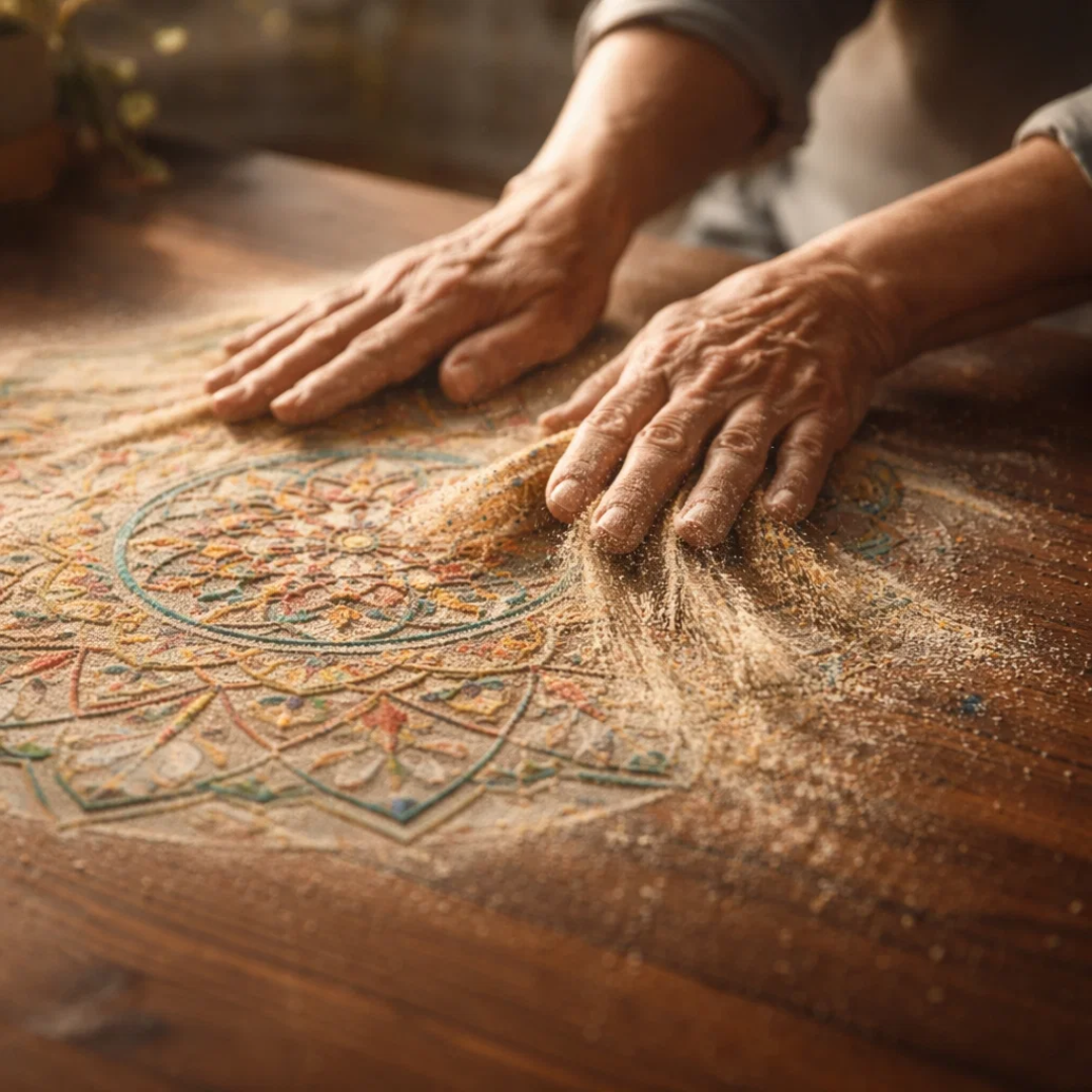 The mandala that matters is the one that changes who you are while you create it.
